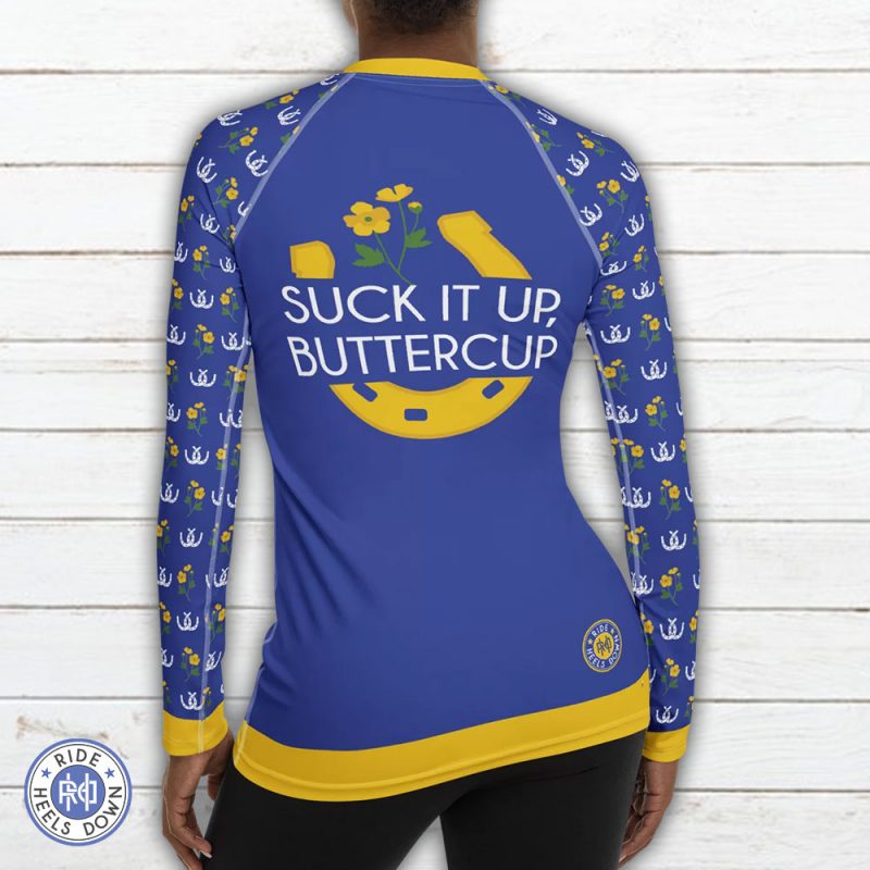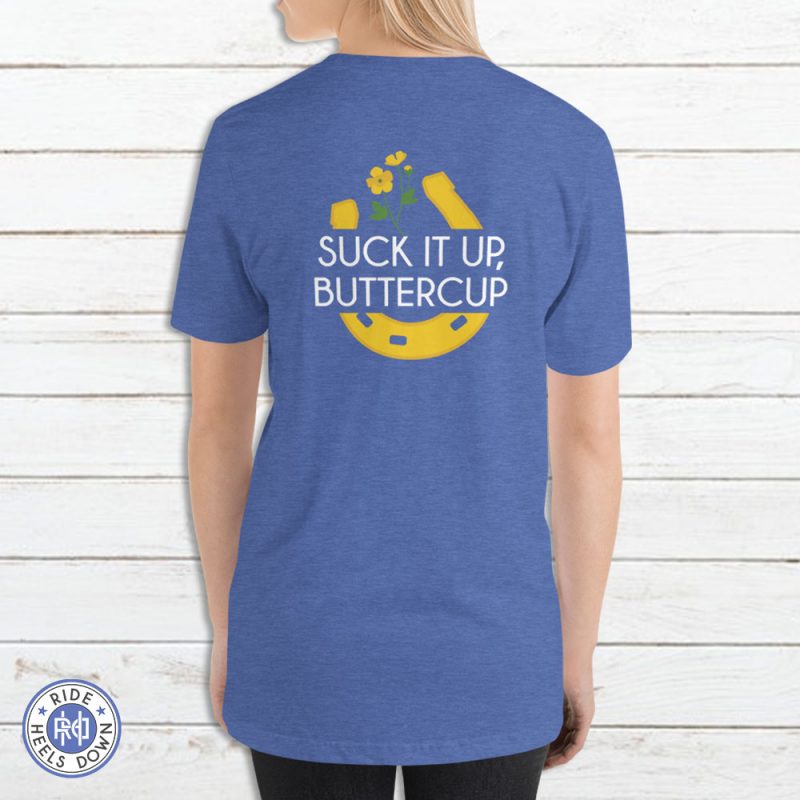 Tough day? Bad ride? Suck it up, buttercup! ;) Pretty and fun, you’ll love how our Suck it Up Buttercup t-shirt pairs perfectly with our matching wristband and boot socks!
