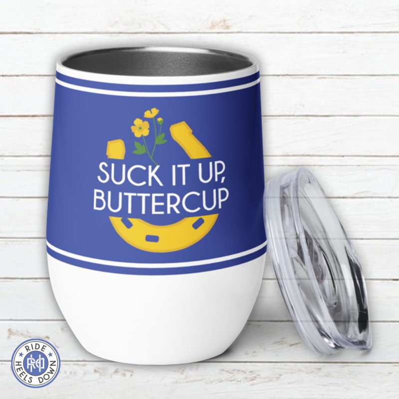 Tough day? Bad ride? Suck it up, buttercup! ;) Pretty and fun, you’ll love how our “Suck it Up, Buttercup” 12 oz tumbler pairs with our matching wristband and boot socks!