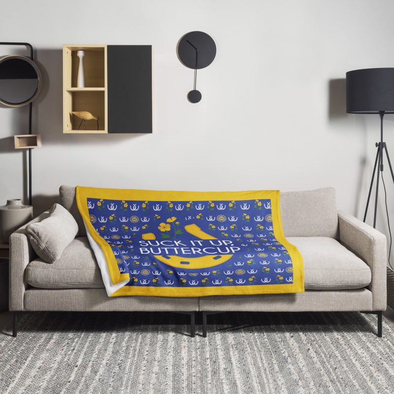 When you can’t make it out to the barn, or for those chilly days sitting around at a show, snuggle up with our super soft and fun “Suck It Up, Buttercup” throw blanket!