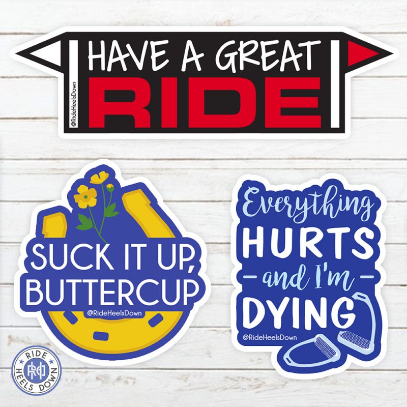 Choose from 3 of our most popular designs, now in fun vinyl stickers that are perfect for your tack box, truck, trailer, school locker, laptop, or anywhere else you can think of! :)